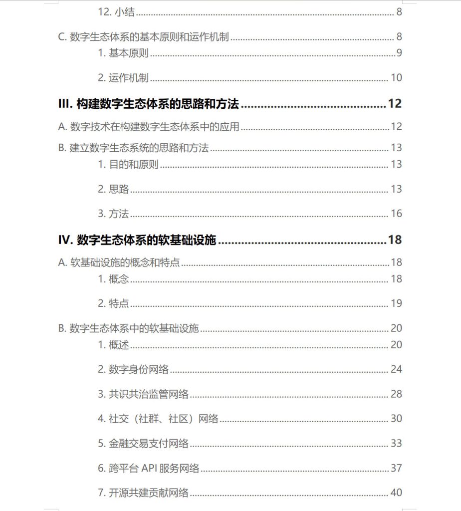 软基础设施包括数字身份网络、共识共治监管网络、社交(社群、社区)网络、金融交易支付网络、跨平台API服务网络、开源共建贡献网络、数据要素流通网络、大数据AI服务网络、人机交互基础设施等,它们在数字生态体系中为数字经济的基本运行和优化进化提供了基本保障。软基础设施的健全与完善对于数字生态体系的发展和数字经济的持续增长具有重要意义。